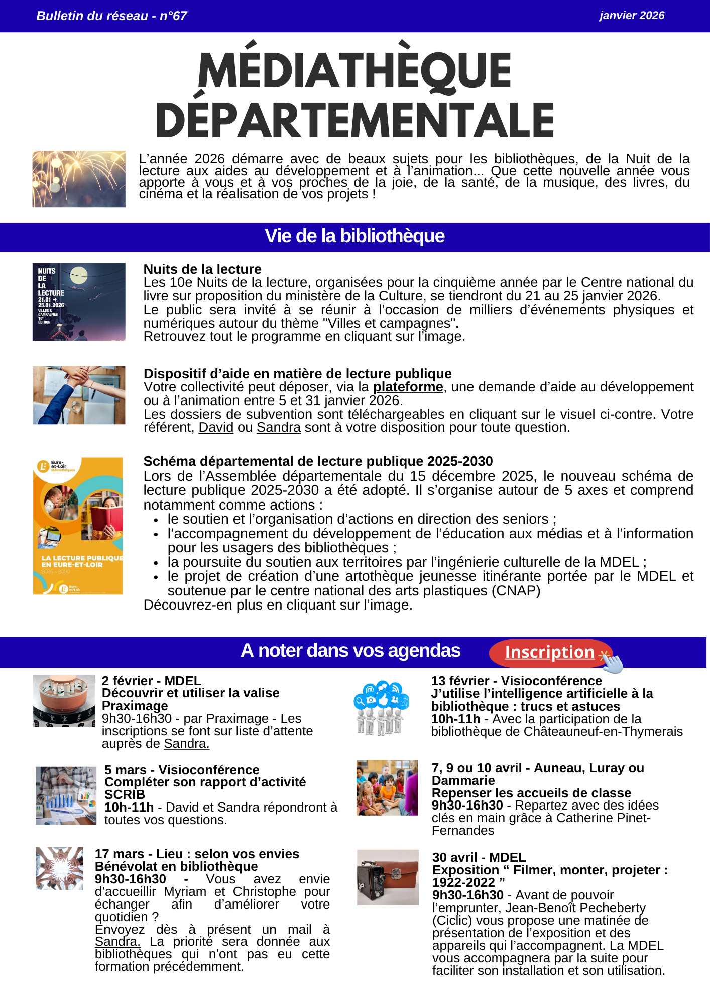 Au sommaire : Nuits de lecture, dispositif d'aide en matière de lecture publique, schéma départemental, et l'agenda des formations.