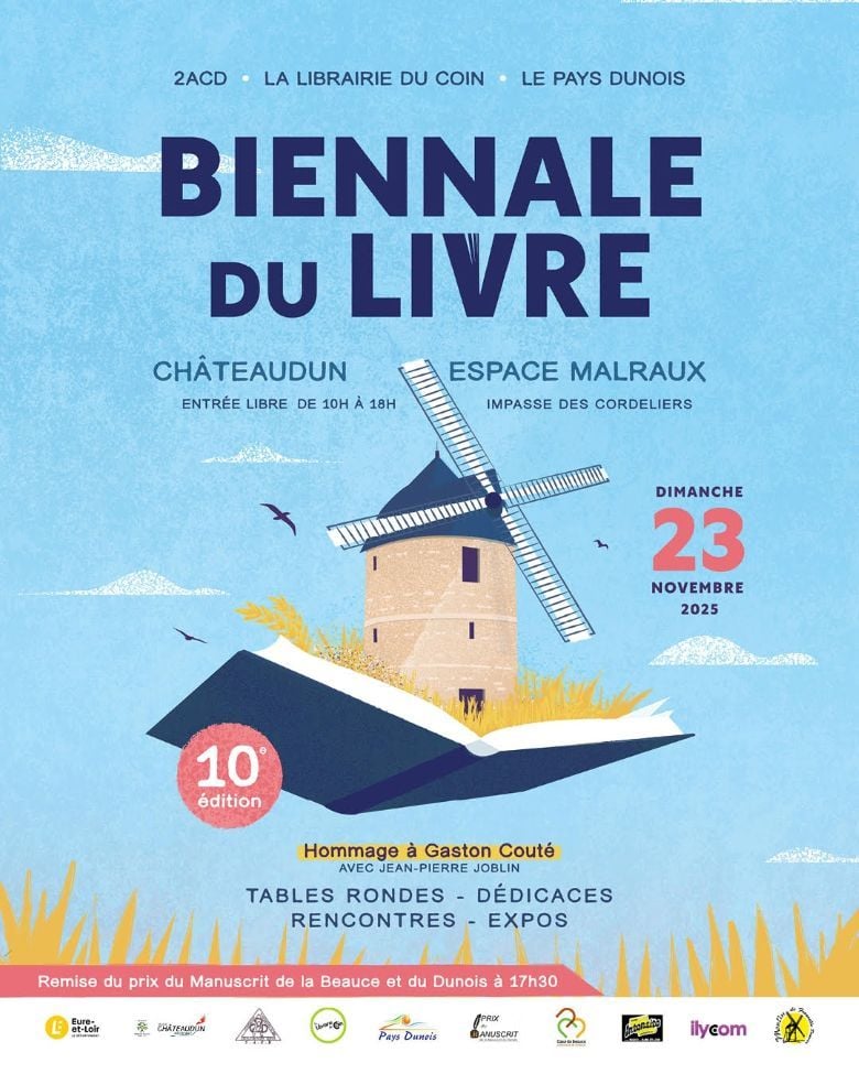 La 10ème édition de la Biennale du livre se tiendra le dimanche 23 novembre 2025 à l'Espace Malraux, à Châteaudun.