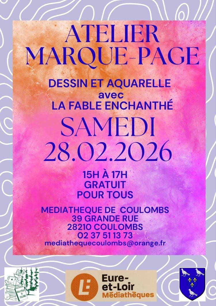 Pour tous ceux qui désirent découvrir l'aquarelle et le dessin, et participer à la création du nouveau marque-page de la médiathèque, nous vous invitons à un atelier festif, joyeux et convivial, animé par La Fable enchanthé !