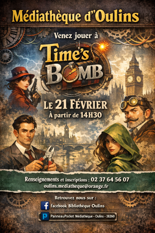 La médiathèque vous propose de jouer à Time bomb, un jeu de cartes qui se joue en équipe : soit pour faire exploser la bombe, soit pour tenter de la désamorcer...