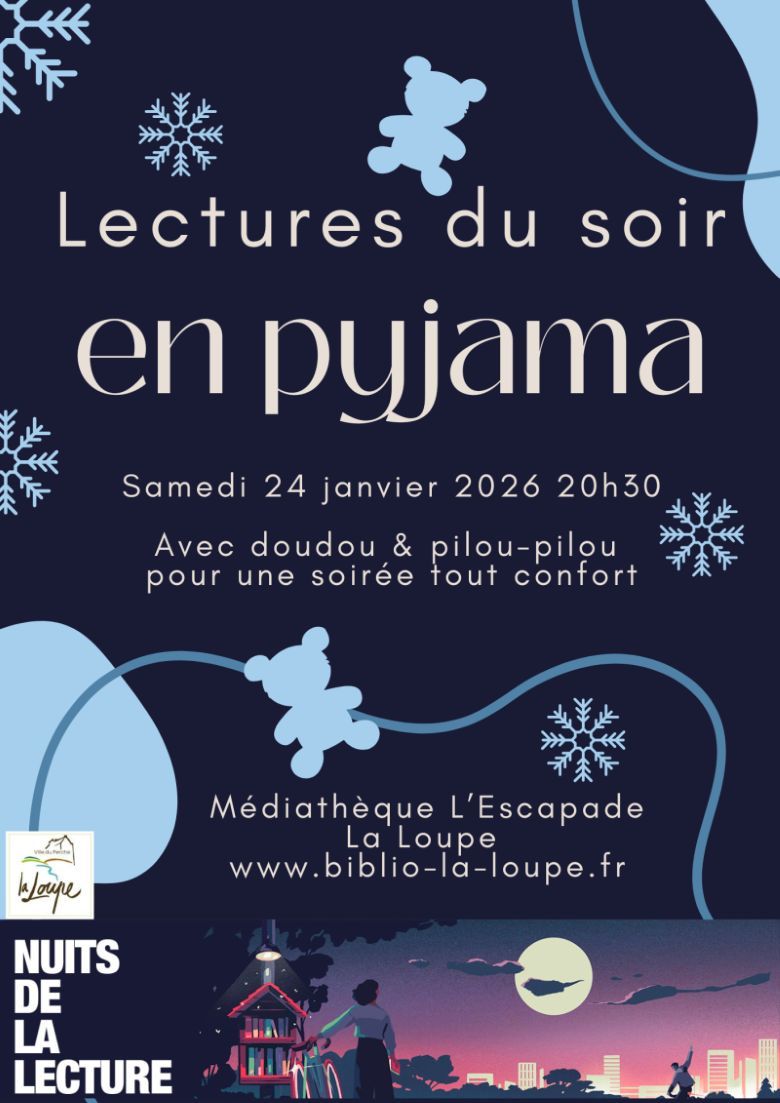 Dans le cadre des "Nuits de la lecture", la médiathèque vous propose d'apporter vos doudous et pilou-pilou pour des lectures du soir en pyjama.