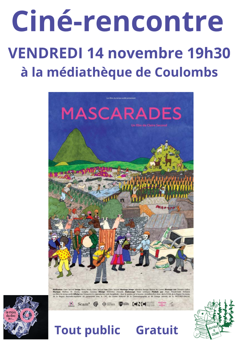 Dans le cadre du mois du doc, la médiathèque vous propose un Ciné-rencontre avec Mascarades, un film de Claire Second.