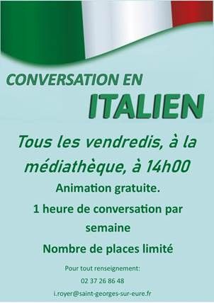 La médiathèque vous propose des conversations en italien tous les vendredis après-midi.