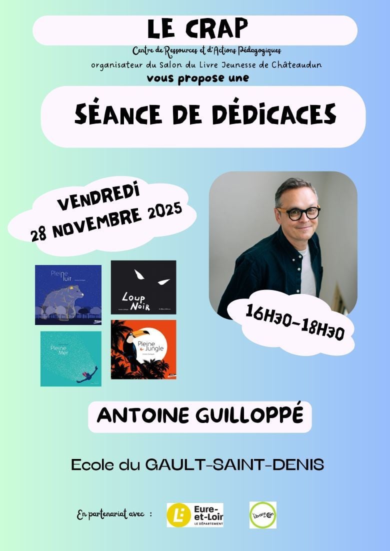 Le CRAP (Centre de Ressources et d'Actions Pédagogiques), en partenariat avec la librairie du Coin et la Médiathèque départementale, vous propose de rencontrer Antoine Guilloppé, auteur et illustrateur jeunesse, et de vous faire dédicacer ses ouvrages.